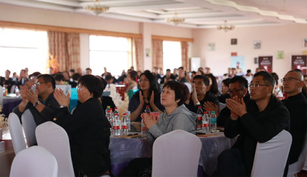 副總裁李俊峰的會議致辭中,向大家介紹了好當家海參全產業鏈的不斷完善,并對年度發展策略和三年來所取得的品牌榮譽以及做了概括性描述,號召加盟商們繼續圍繞“一只海參百億產業”的企業發展目標,攜手致遠,聚勢而上。