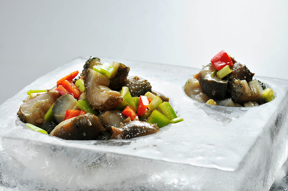 1、高壓海參洗凈、切成塊狀,汆水;燒椒洗凈切成塊狀,汆水;