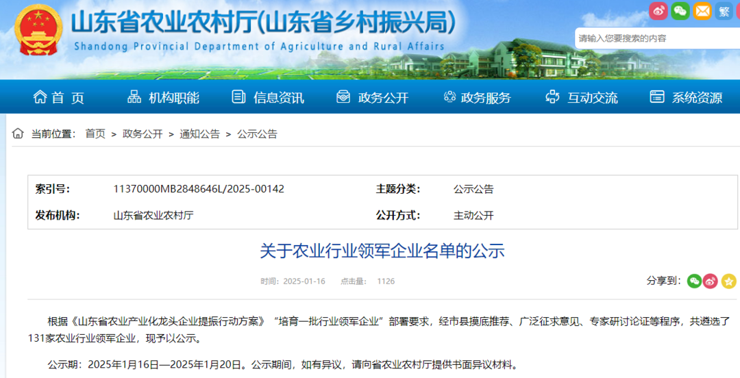 根據(jù)《山東省農(nóng)業(yè)產(chǎn)業(yè)化龍頭企業(yè)提振行動(dòng)方案》“培育一批行業(yè)領(lǐng)軍企業(yè)”部署要求,經(jīng)市縣摸底推薦、廣泛征求意見(jiàn)、專家研討論證、公示等程序,共遴選了131家農(nóng)業(yè)行業(yè)領(lǐng)軍企業(yè)。
